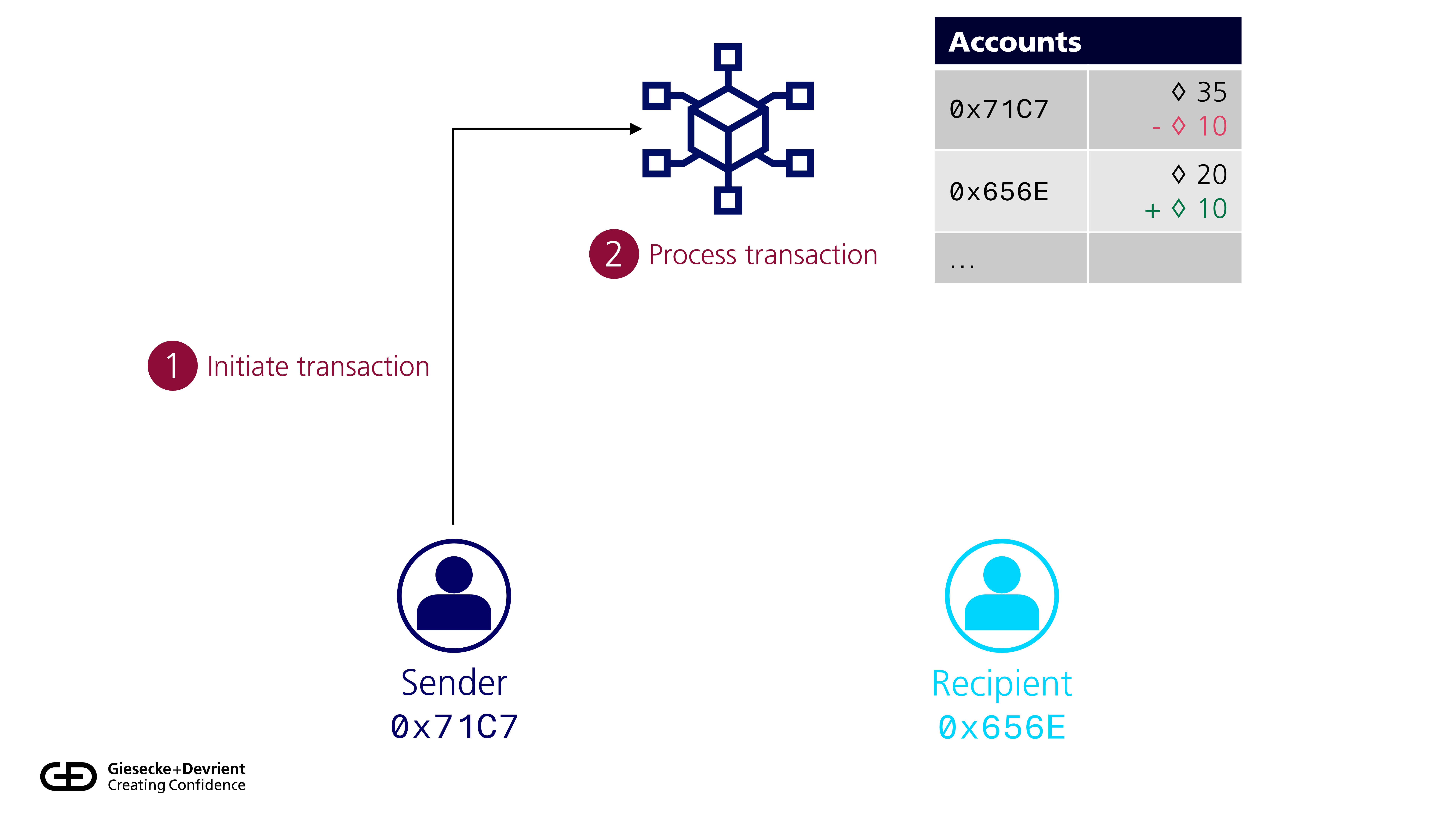 Why does this happen? In traditional banking, I have an account with a bank, and that bank has an account with the central bank (here: the European Central Bank).